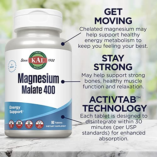 KAL® Magnesium Malate 400 | Chelated with Malic Acid for Energy Production | Supports Healthy Muscle Function | 90 Vegetarian Tablets